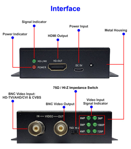 - Converts Analog HD TVI/AHD/CVI/CVBS signal from BNC to HDMI effectively, Analog HD Input (BNC) x 1 & Loop Out (BNC) x 1